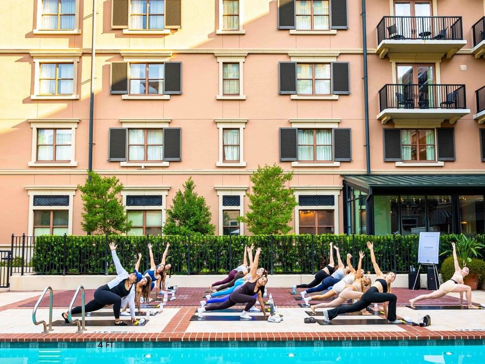 Enjoy complimentary poolside yoga every Saturday at 10 AM—an energizing way to start your weekend in our serene outdoor setting. Registration required.