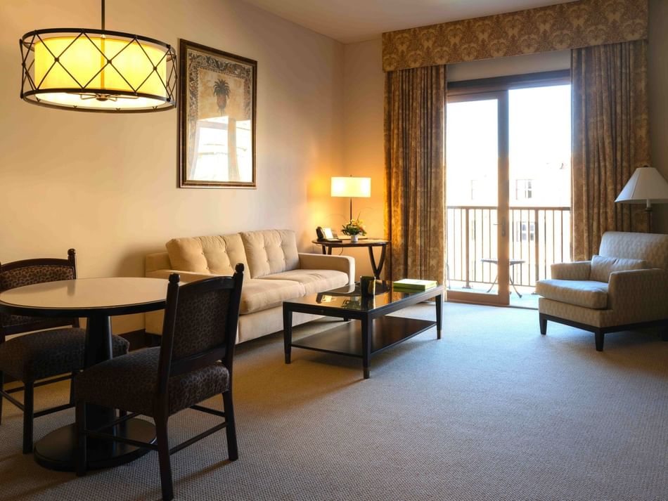 An 825 sq. ft. spacious one bedroom suite with private king bedroom, kitchen, living area, and private balcony. Kitchen includes a mini-fridge, stovetop, microwave and sink. Each room is outfitted with luxurious Santa Maria Novella toiletries, premium 300-thread count Rivolta Carmignani linens, and plush Kassatex bathrobes.